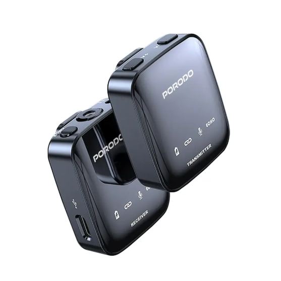 Porodo Two-Device Connect Handheld Lavalier Microphone is a multi-purpose sound solution for industry professionals and content creators. Its 2.4GHz wireless transmission enables it to support low-latency, high-definition audio with a frequency of 20Hz-20KHz and a sensitivity of 90dB. The receiver and microphone are powered by 3.7V, 400mAh batteries that run 10-12 hours and have a range of 15-30m guaranteed. It supports digital cameras, camcorders, Android, and iPhone through its Type-C and 3.5mm jack connectors. It has a dual-channel receiver that supports two devices at once with the added convenience of automatic noise reduction and ≥75dB S/N ratio for crystal clear sound. It has a 300mv maximum audio output and ±10PPM frequency stability to provide reliability in performance. Easy to charge with DC 5V/1A Type-C input, this microphone is ideal for live streaming, interviews, or vlogging, featuring professional-grade sound in a portable, lightweight design.
