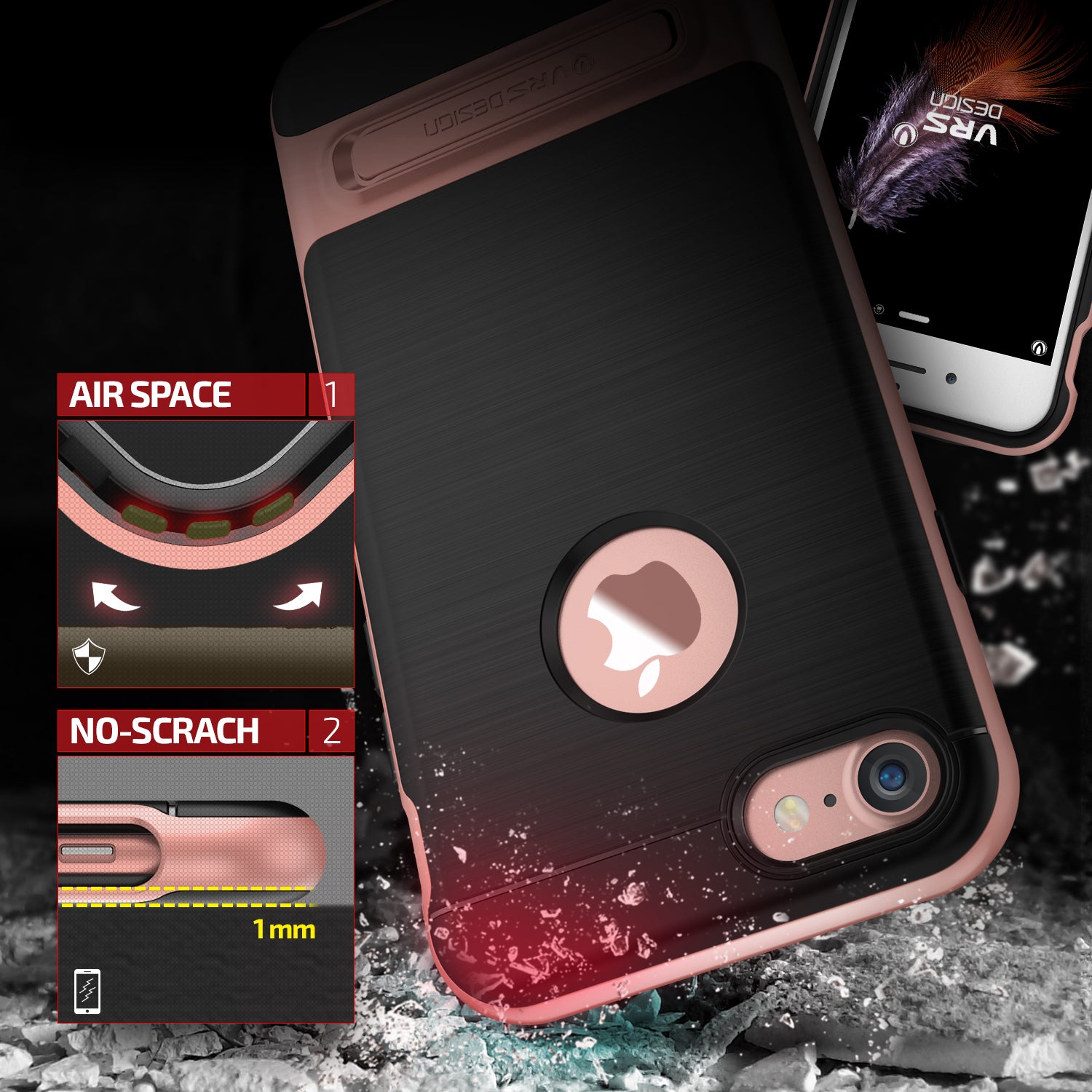 High Pro Shield Series Original From VRS Design Anti-shocks Case For iPhone 7 Black / Rose
